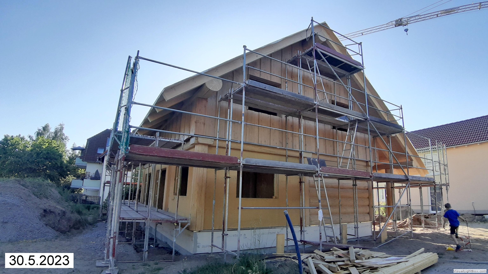 In den Monaten April und Mai 2023 wurde das Haus errichtet – zunächst als Rohbau, aber immerhin ein bedeutender Schritt.