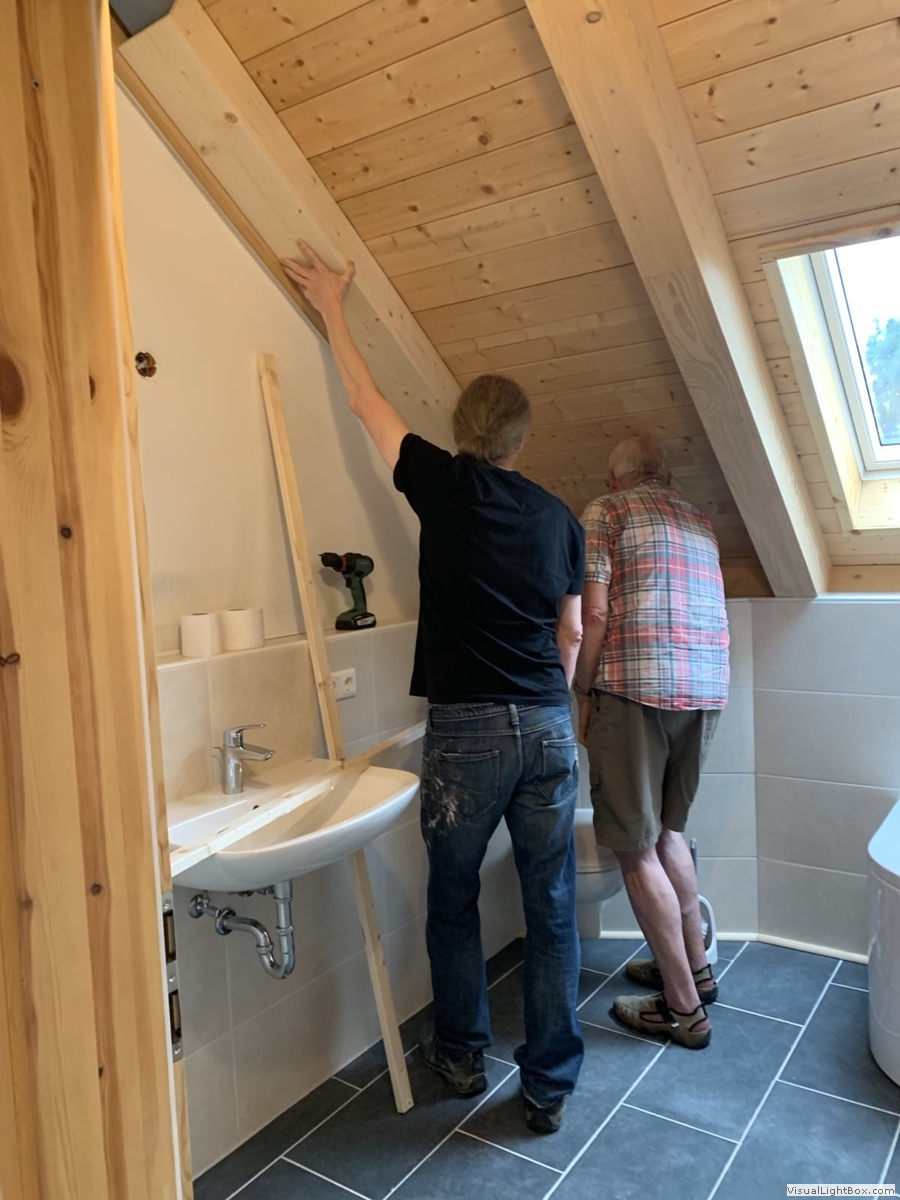 12.7.25: Das Abluftrohr im Bad wird verkleidet