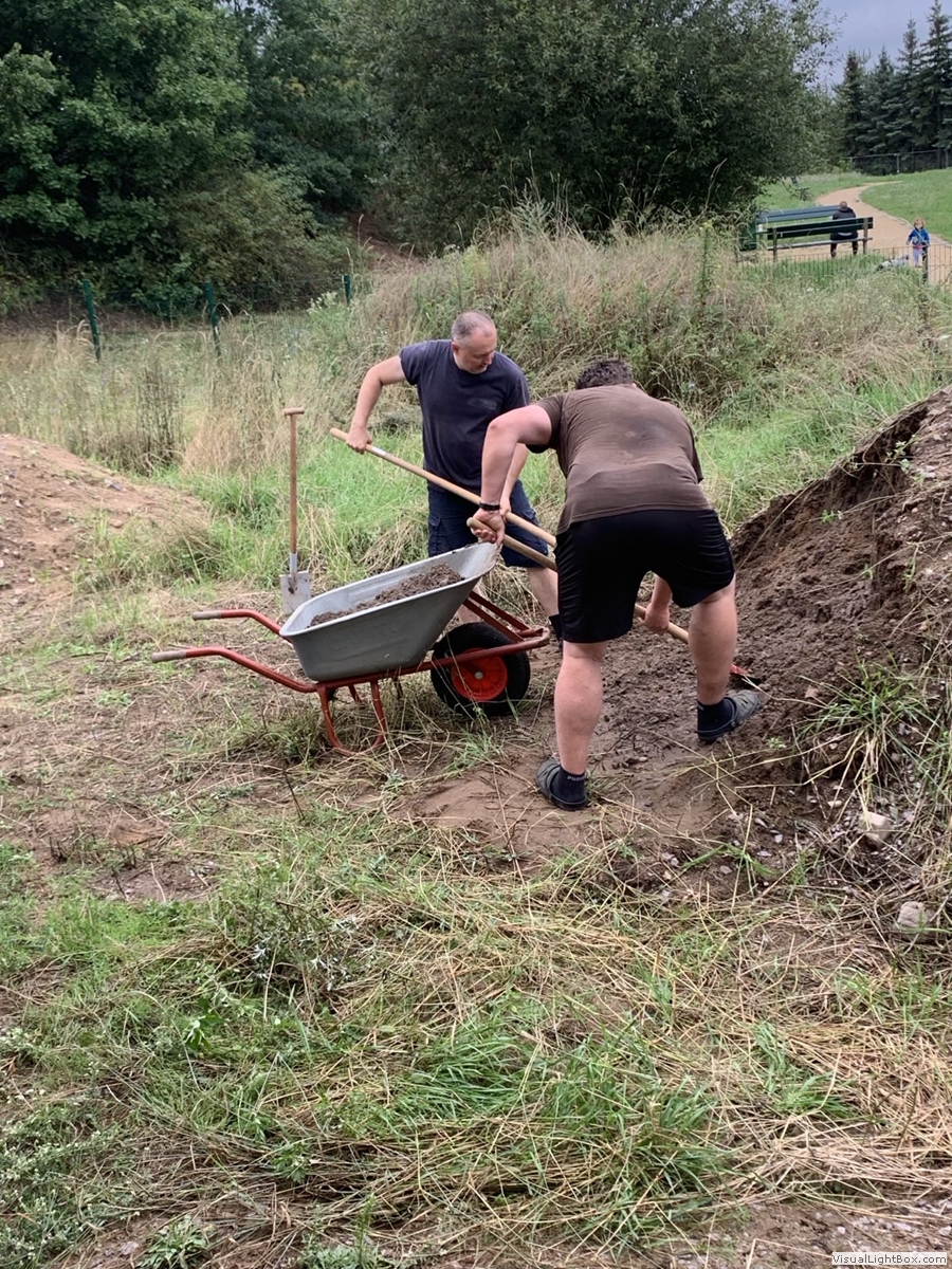 26.7.25: Mit Andrejs tatkräftiger Hilfe wurden 85 (!!!) Schubkarren = ca. 10 t zum Auffüllen bewegt.