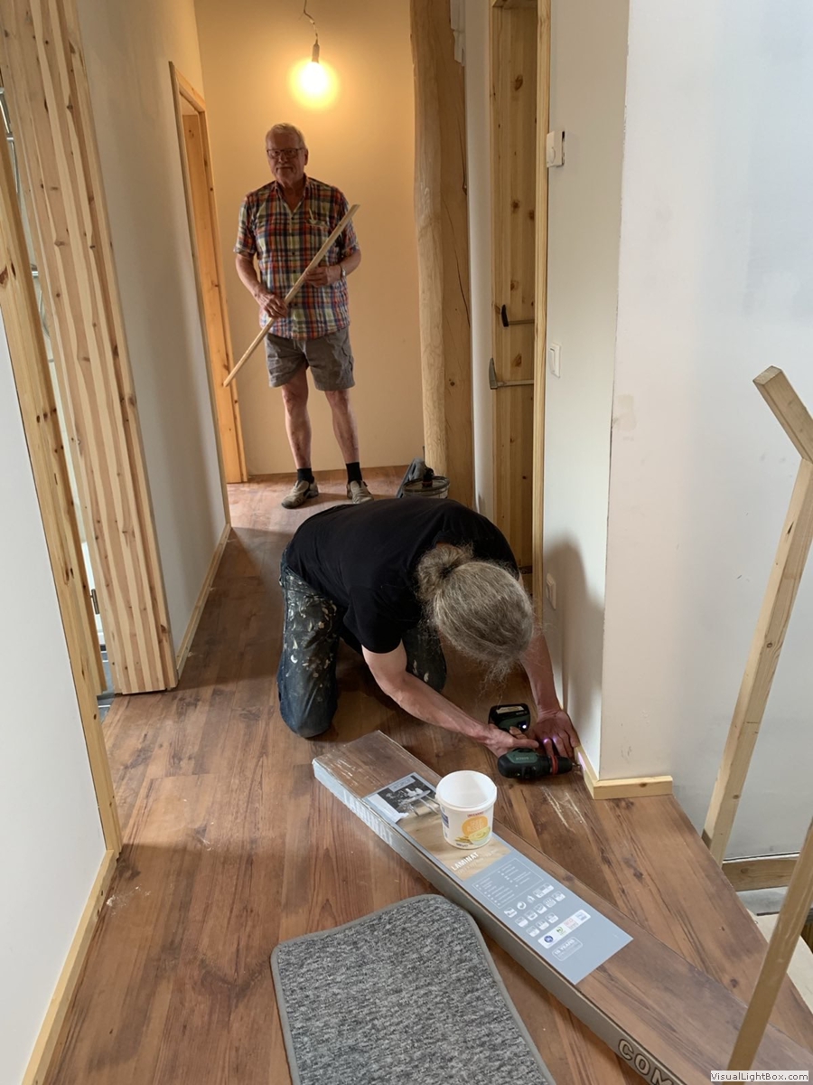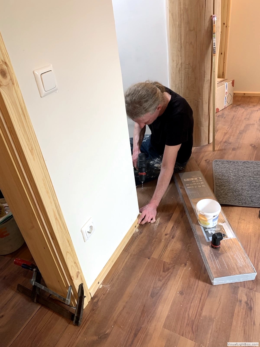 Die Scheuerleisten werden angebracht wie auch die Winkelschiene