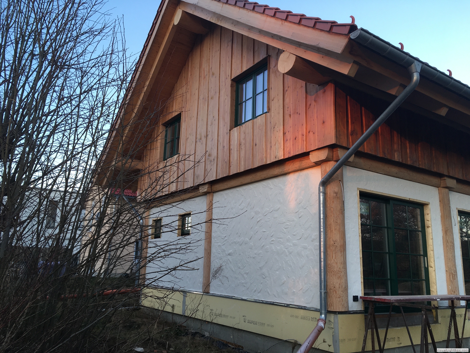 Ab Oktober folgten zahlreiche weitere Arbeiten: die äußeren Laibungen, der Einbau der (Bau-)Treppe, die inneren Fensterbänke und Laibungen, der Türeneinbau, diverse Installationen sowie die Fliesenarbeiten im Bad. Hinzu kamen das Verlegen des Laminats, Tapezier- und Malerarbeiten – und nicht zuletzt eine schier erschlagende Menge an Außenarbeiten.