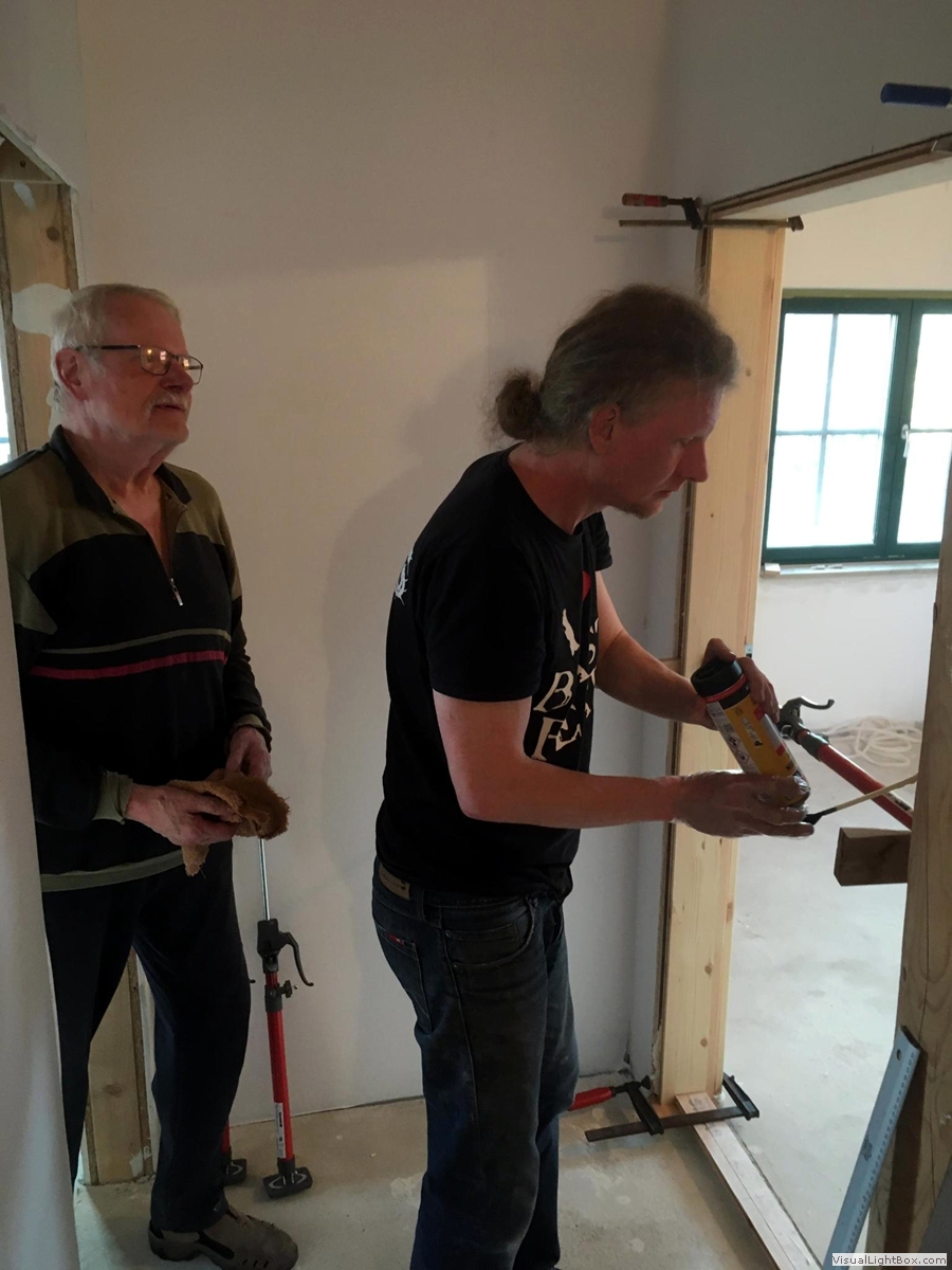 Der Türrahmen des Kinderzimmers wird eingebaut