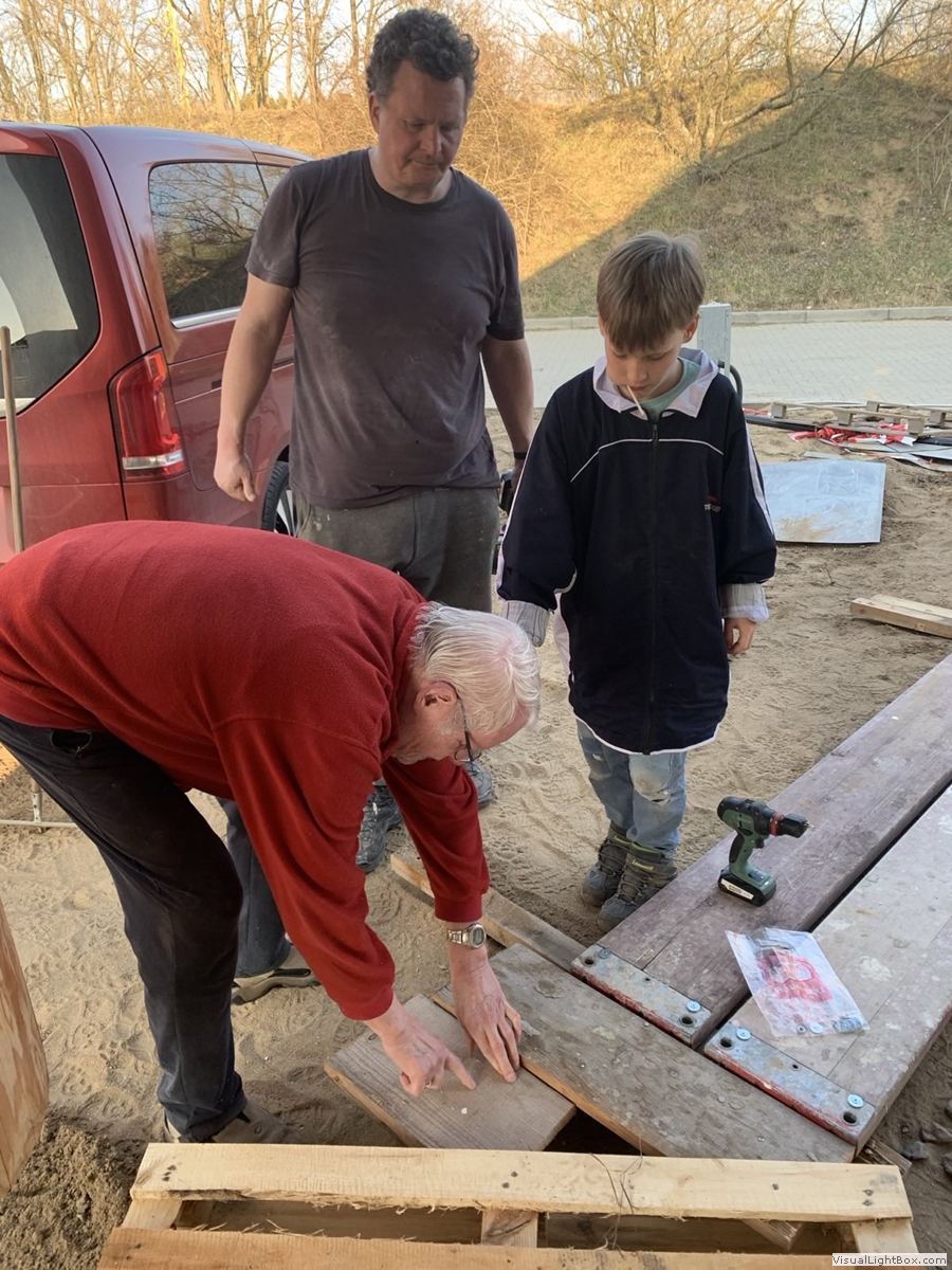 Die beiden fleißigen »Oppas« montieren das Duschbecken
