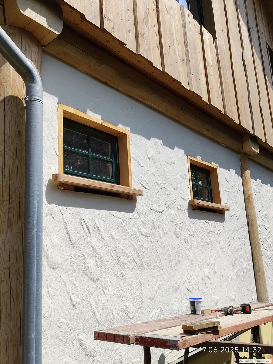 28.6.2025: Drei große und zwei kleine Fensterbretter außen fertig eingebaut