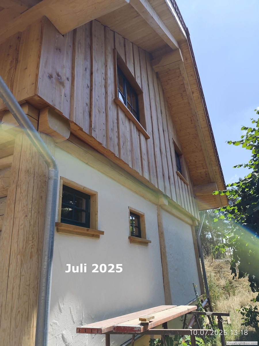 10. Juli: Fertig sind: 1. Etage, Rückseite und Fenster Bereich Eingang