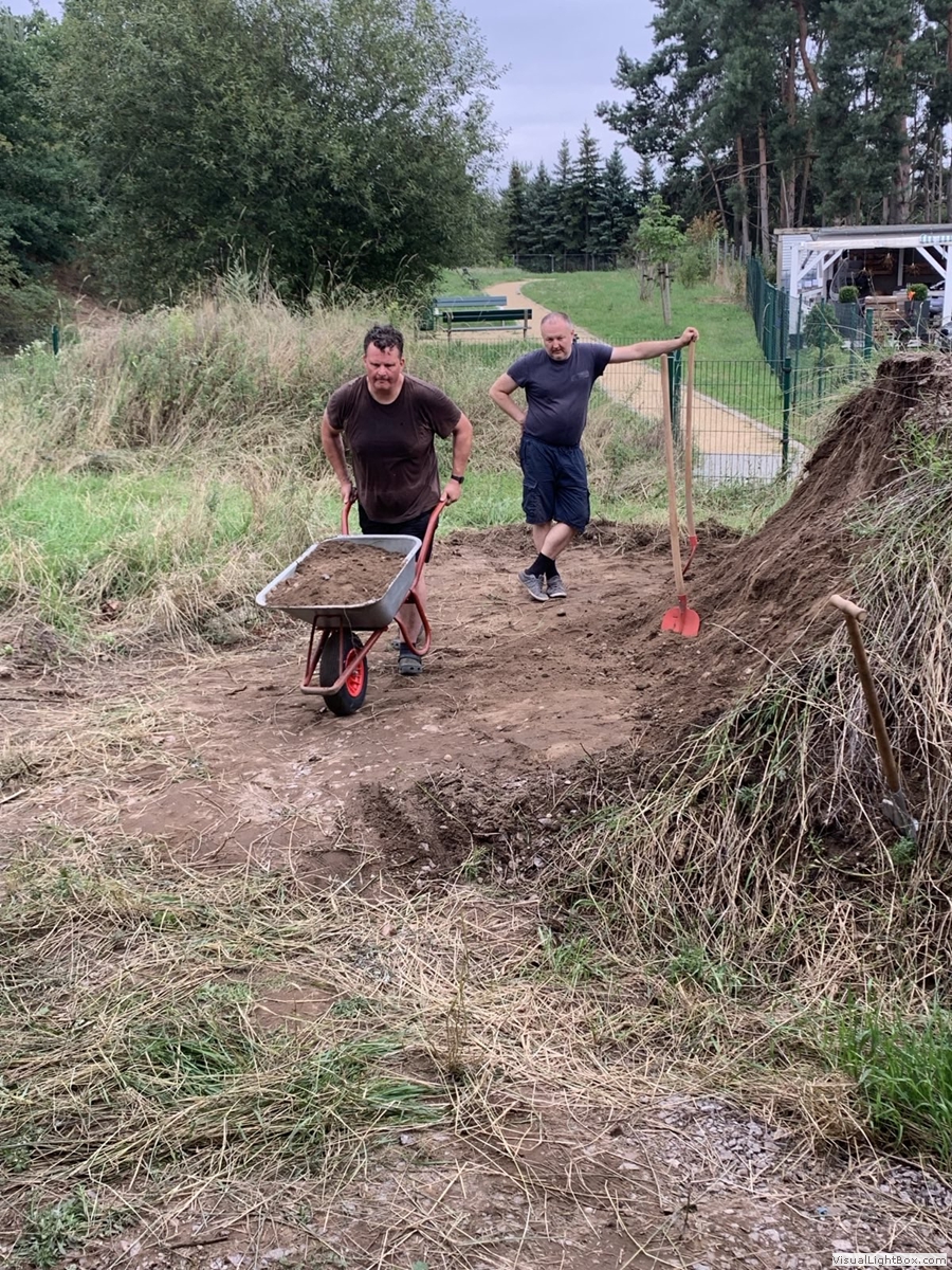26.7.25: Mit Andrejs tatkräftiger Hilfe wurden 85 (!!!) Schubkarren = ca. 10 t zum Auffüllen bewegt.