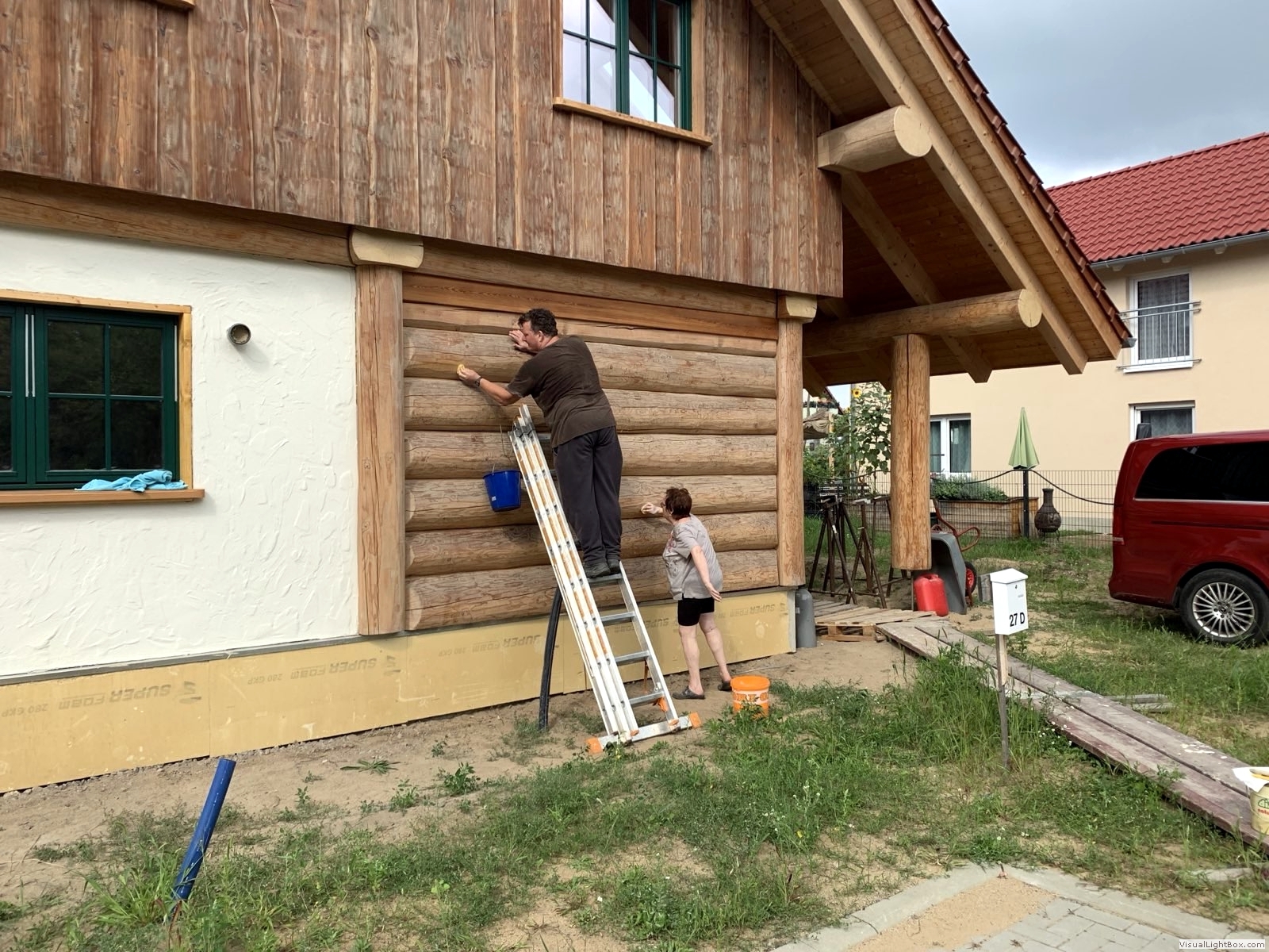 Die letzte Hauswand wird gestrichen - gemeinsam geht es schneller